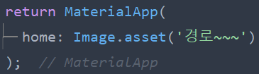 이미지를 넣을 때는 Image.asset('경로') 형식으로 넣어준다.