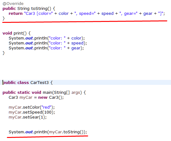 그럼 빨간줄처럼 toString을 통해클래스에 작성한 변수 내용을