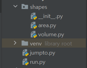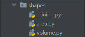 위 사진을 보면 shapes라는 패키지 안에 __init__. py , area.py, volume.py라는 파일이 있습니다.