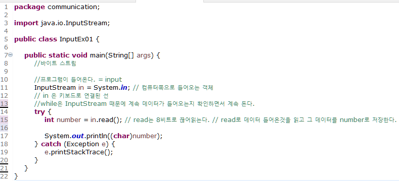 InputStream이 while로 계속 데이터가 들어오는지 대기하다가