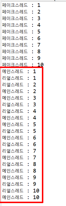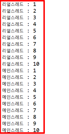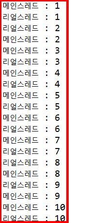4. 리얼 스레드가 실행 되면서 maind의 for문이 같이 동작하게된다.