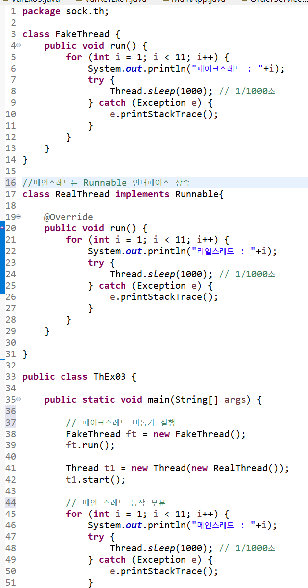 2. Runnable 인터페이스를 상속 받은 RealThread클래스가 실행 된다.