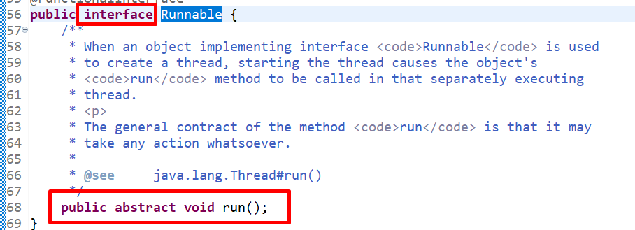 Runnable는 인터페이스이며 추상메서드가 있습니다.