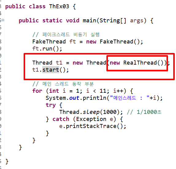 3. 이때 RealThread는 자신의 클래스 안의 run메서드가 실행된다.