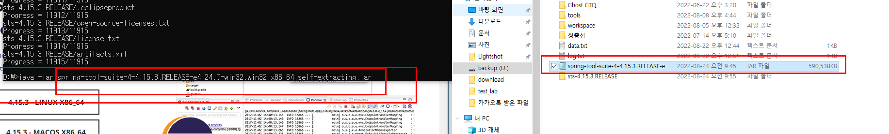 java -jar 뒤에 다운받은 jar파일의 경로를 넣어서 실행해줍니다.