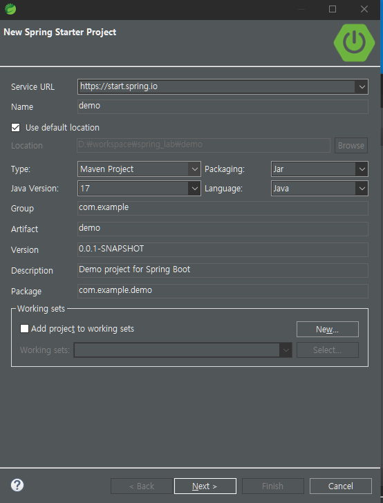 혼자 프로젝트를 만들때 밑에 3개의 박스를 바꿔주면된다.