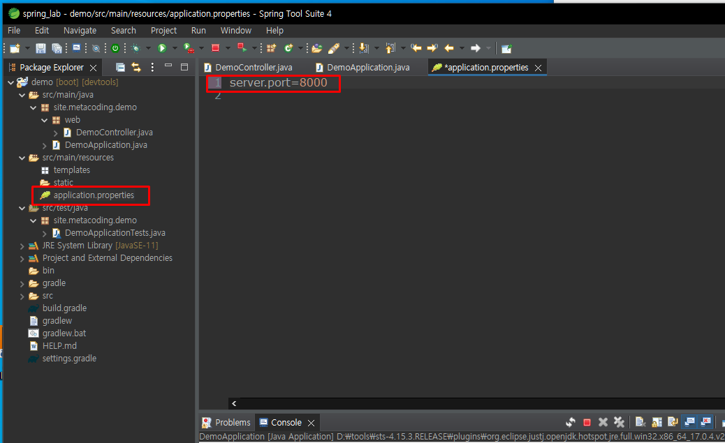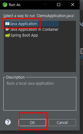 DemoApplication에서 Ctrl +F11을 눌러준다.