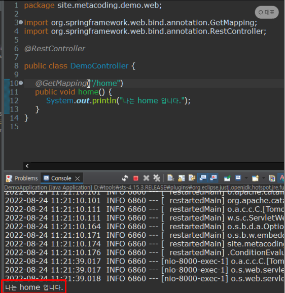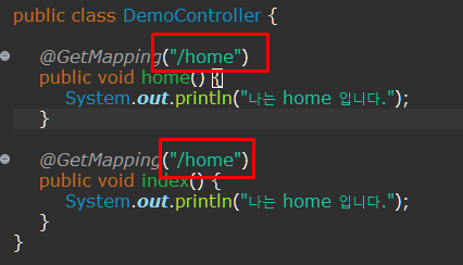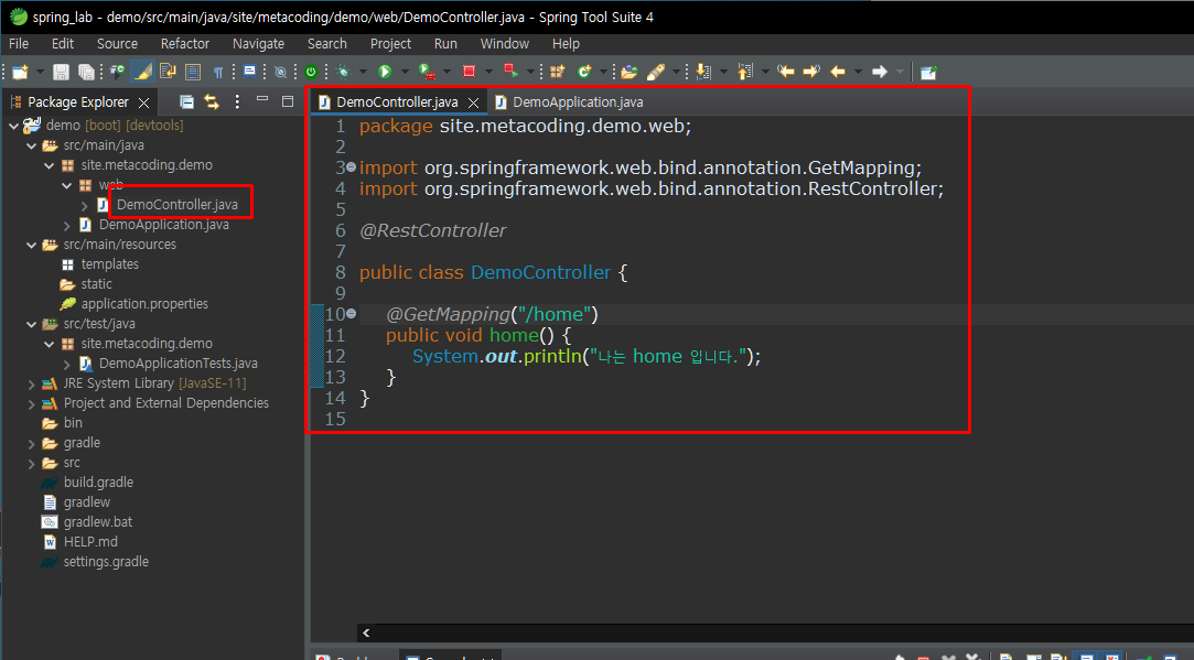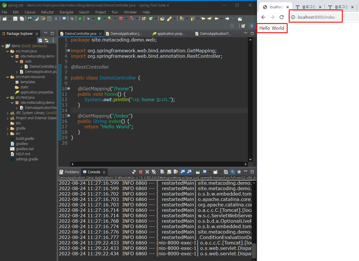 DemoController 클래스에 아래와 같이 작성을 해준다.