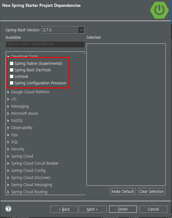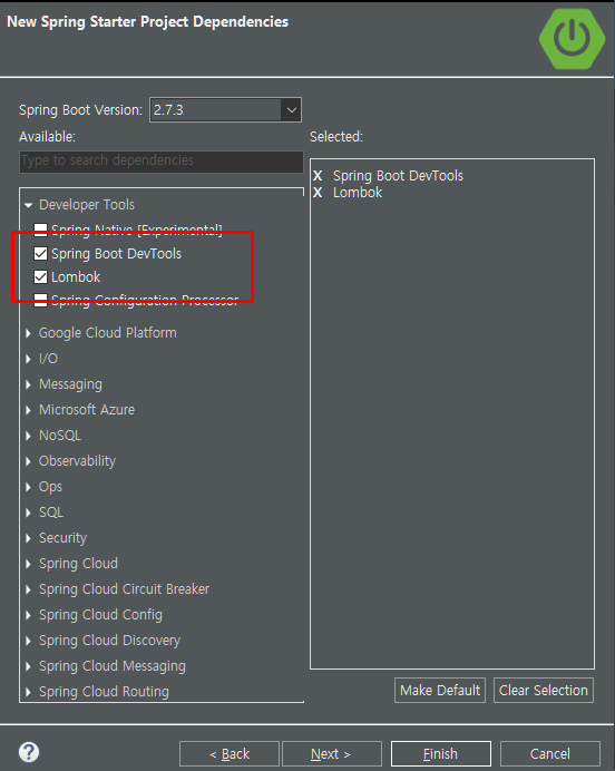 필요한 모듈들을 모두 선택한 다음 Finish를 눌러줍니다.