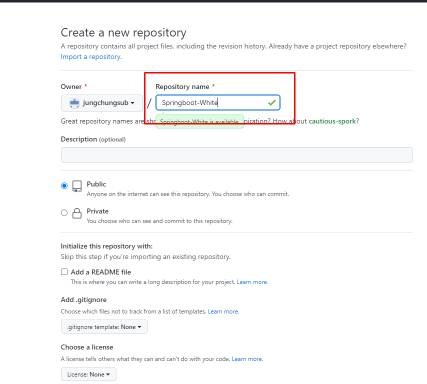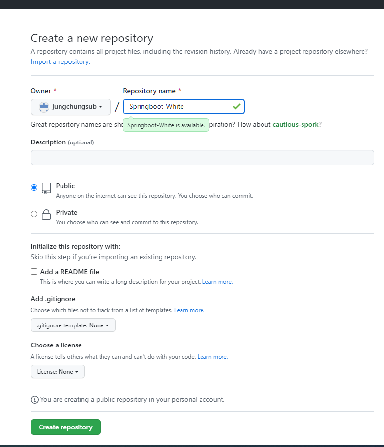 git remote add origin https://github.com/jungchungsub/Springboot-White.git을