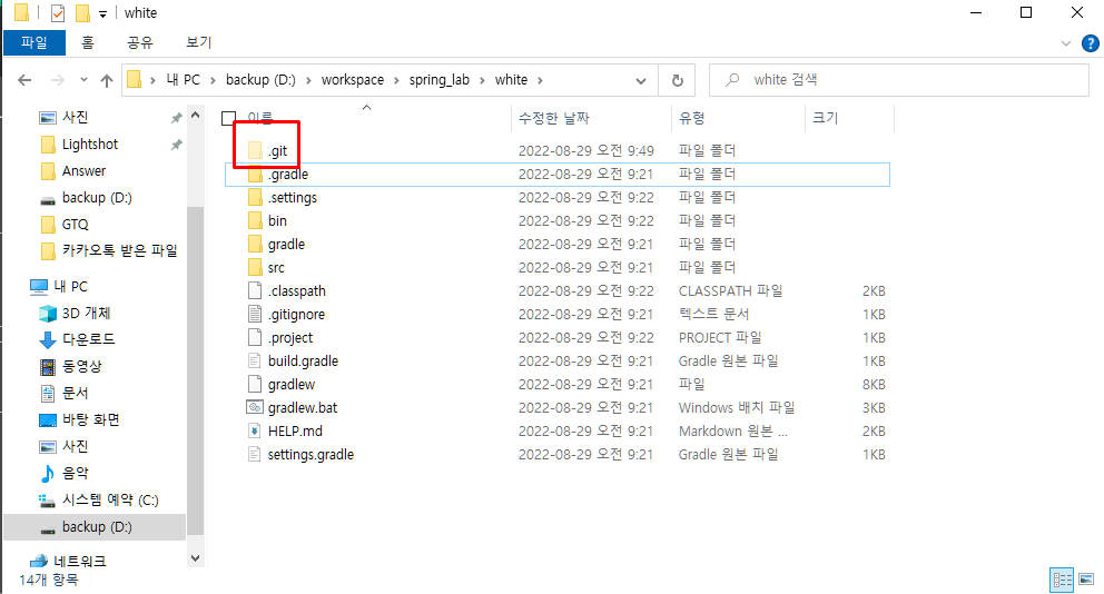 숨김파일 보기 해서 완료되었는지 확인한다.