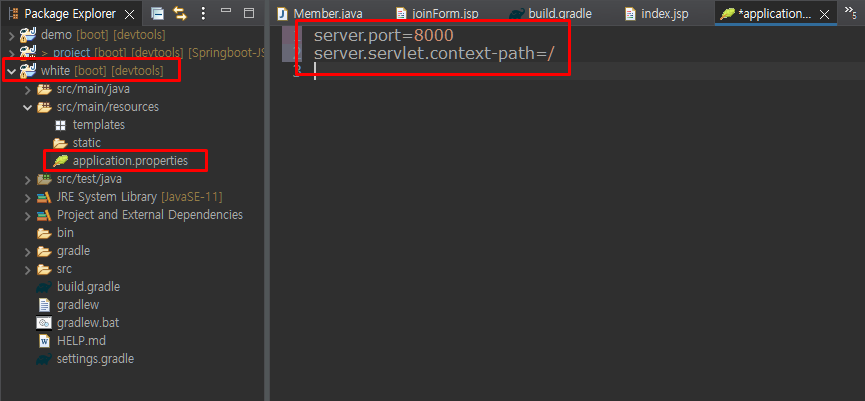 server.servlet.context-path=/white 이런식으로 작성한다.