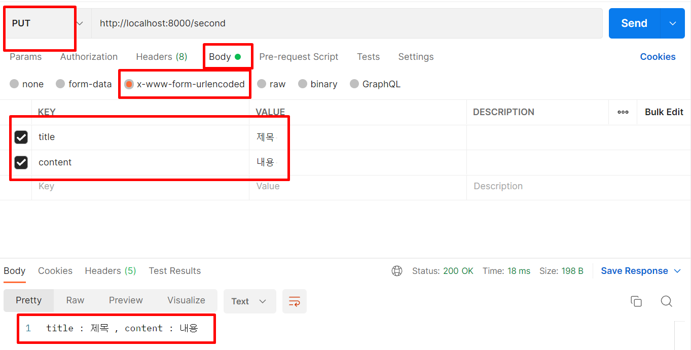 body값에 KEY,VALUE값을 입력하면 값을 전달해준다.
