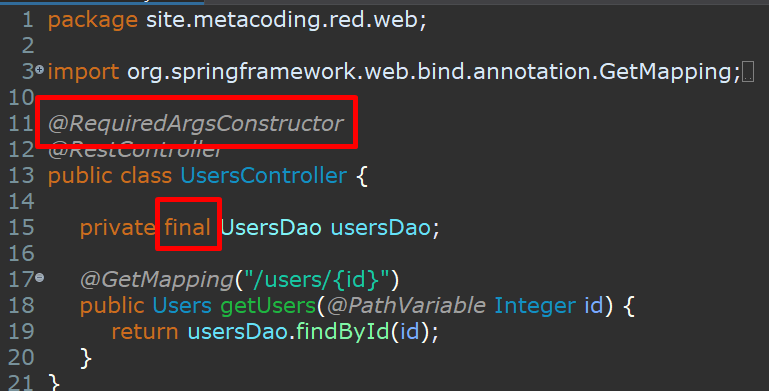 final이 붙어있는 애들만 생성자를 만들어준다.