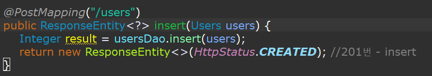 UsersDao에서 insert 리턴타입을 Integer로 바꾸어준다.