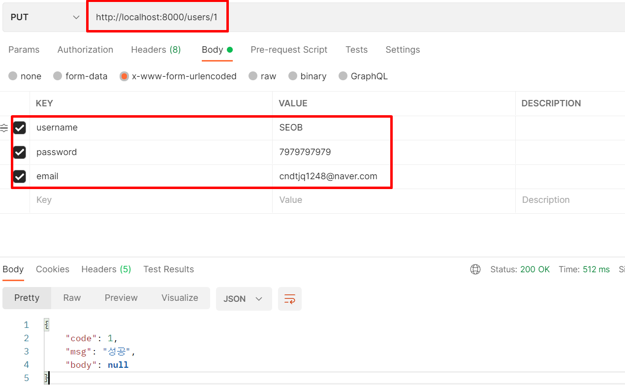 리팩토링하면 전체를 덮어쓰는 것 이기 때문에 Users 오브젝트를 넣는다.