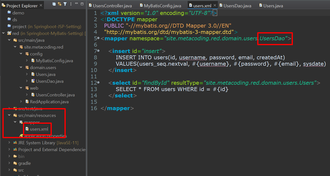 mapper에 UsersDao를 걸어 놓았기 때문이다.