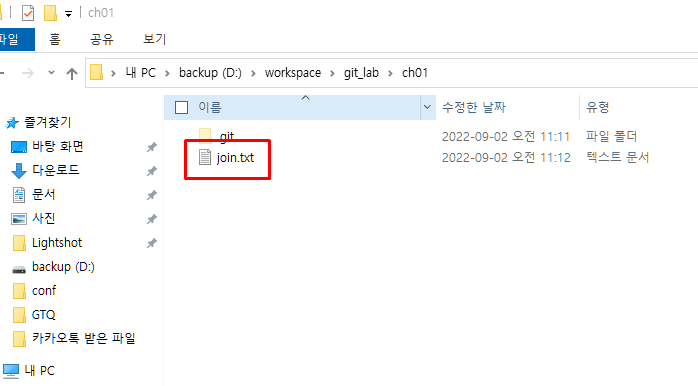 write 브랜치로 바뀐 상태에서 write.txt생성(현재 브래니의 위치 = write)