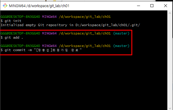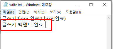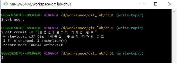 write 텍스트 파일을 수정후 "글쓰기 최종완료"라고 커밋