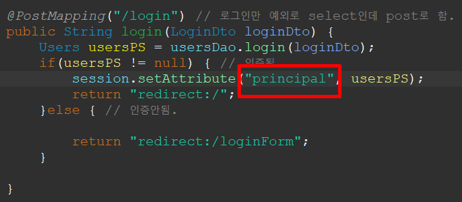 key값에 principal이 있으면 로그인이 된 것이고, 없으면 안된것이다.