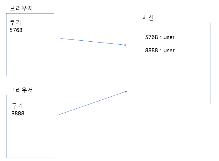 세션은 서버(server)의 내저장소이고, 쿠키는 브라우저(client)의 내 저장소이다.