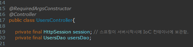 HttpSession은 IOC 컨테이너에 저장이 되어있다.(spring이 해준다.)