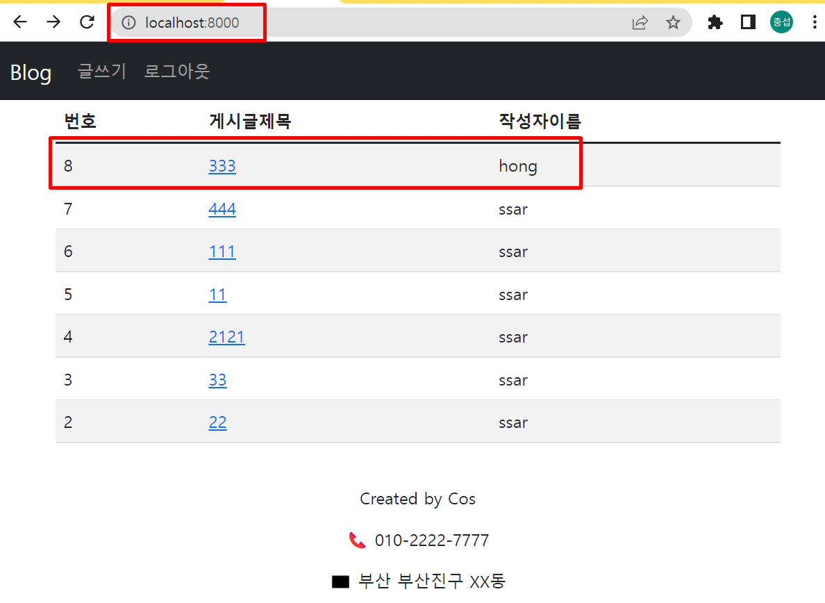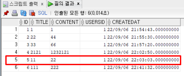 디비에서 확인을 해보면 잘들어갔는지 확인할수 있다.
