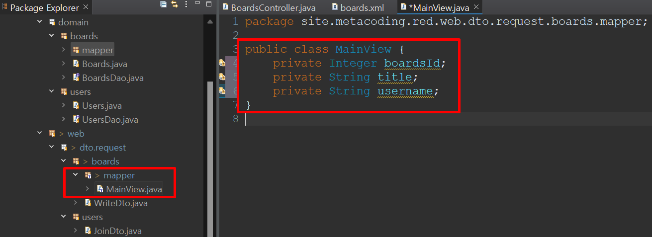 model을 사용하여 정보들을 가지고 boards.main으로 이동한다.