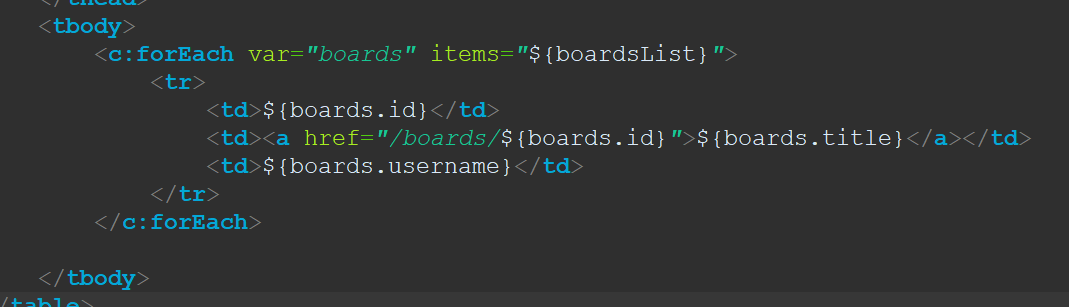 boardslist에 있는 데이터들을 꺼내서 boards 변수에 저장하여 /boards/${boards.id}로 뿌린다.