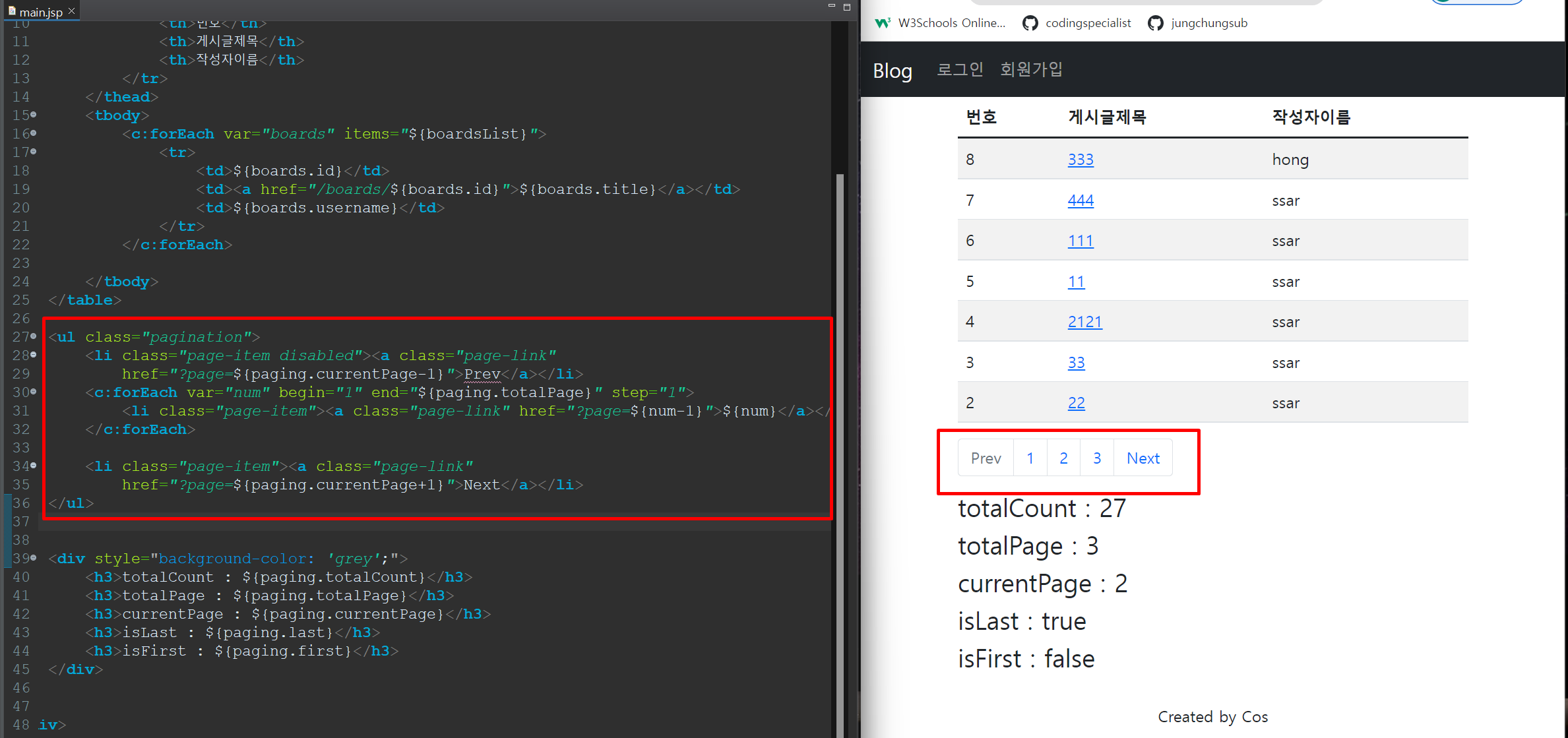 한페이지에 게시글 3개씩 보여줄것이기 때문에 3으로 바꾸어준다.