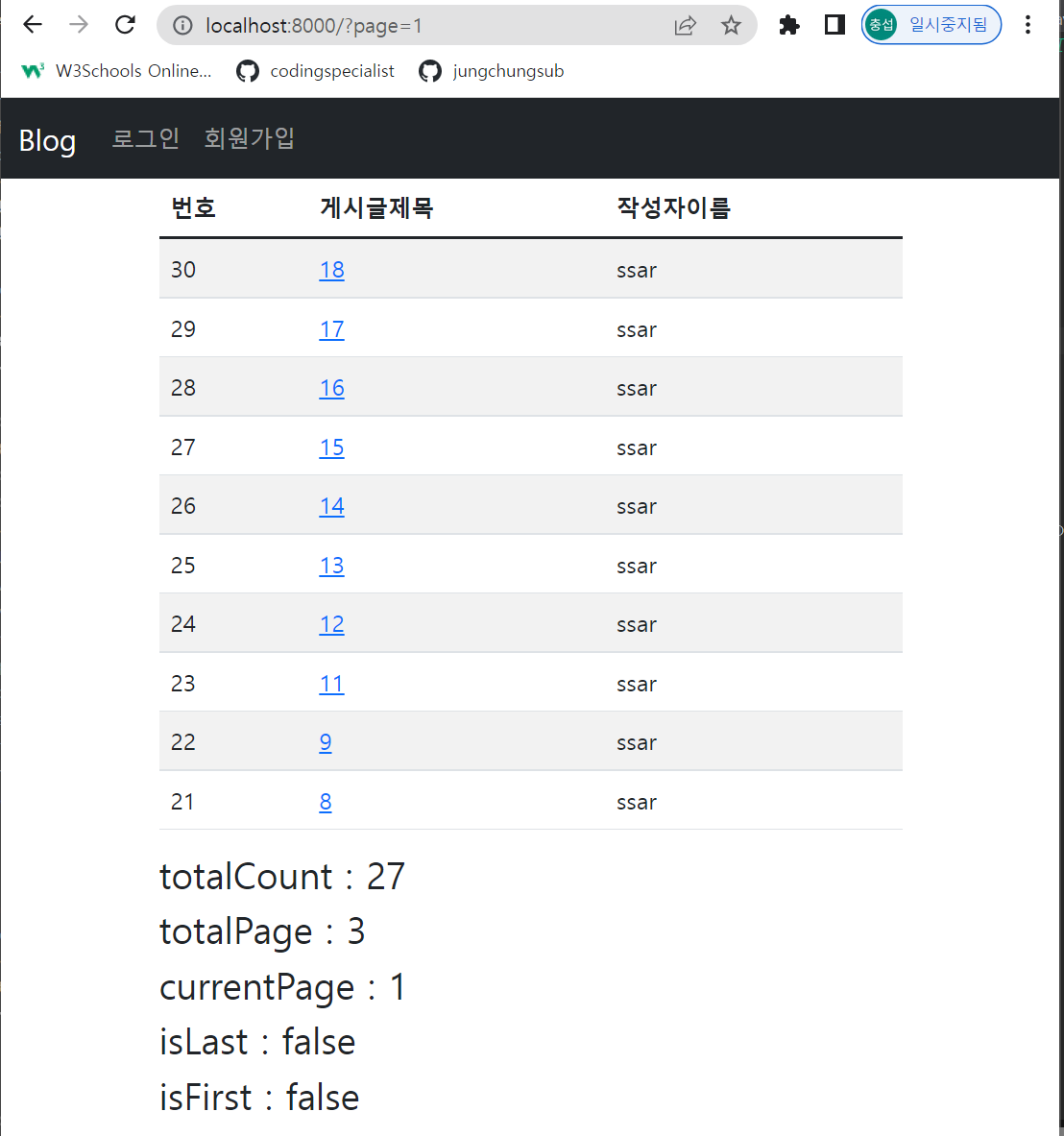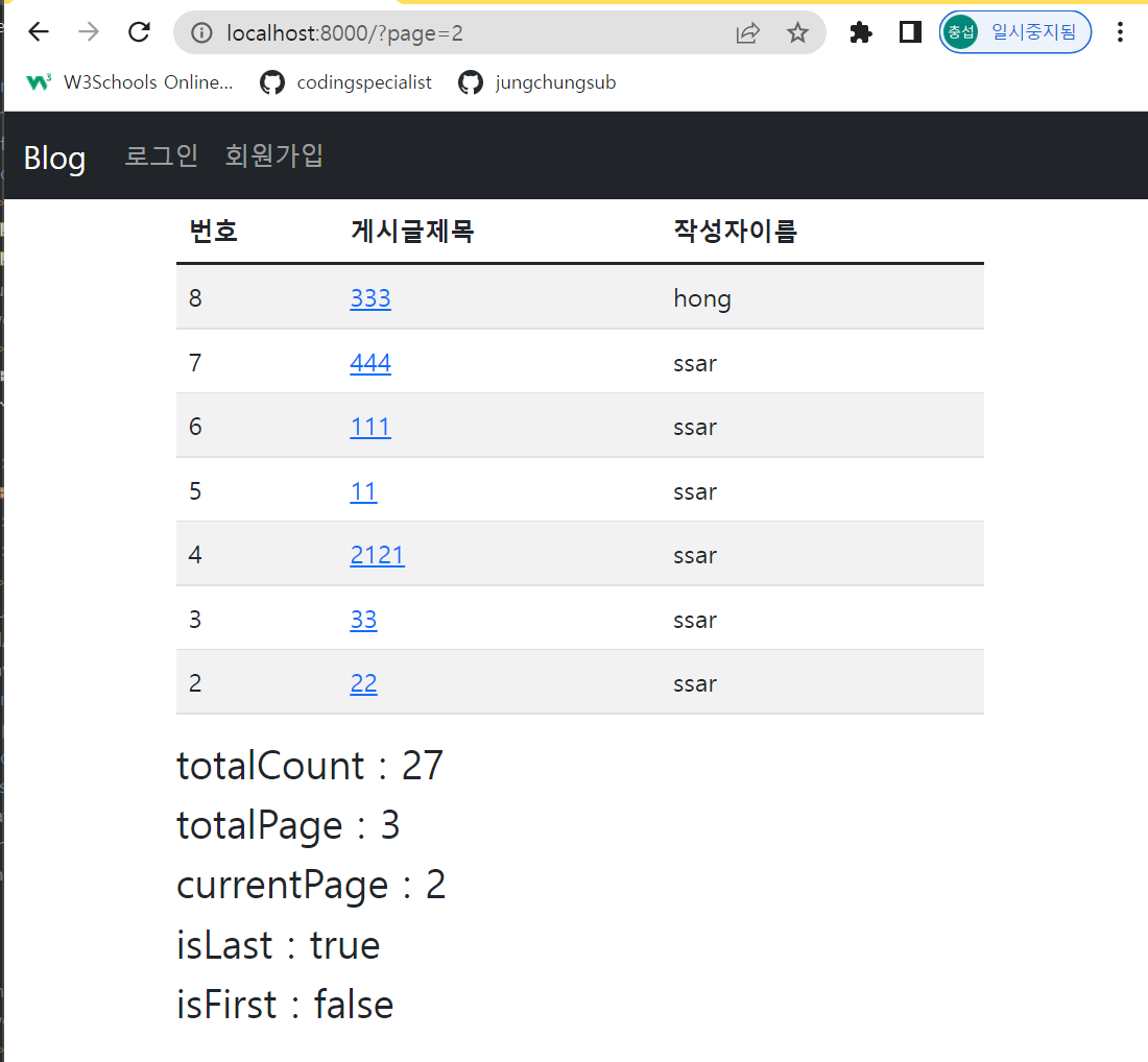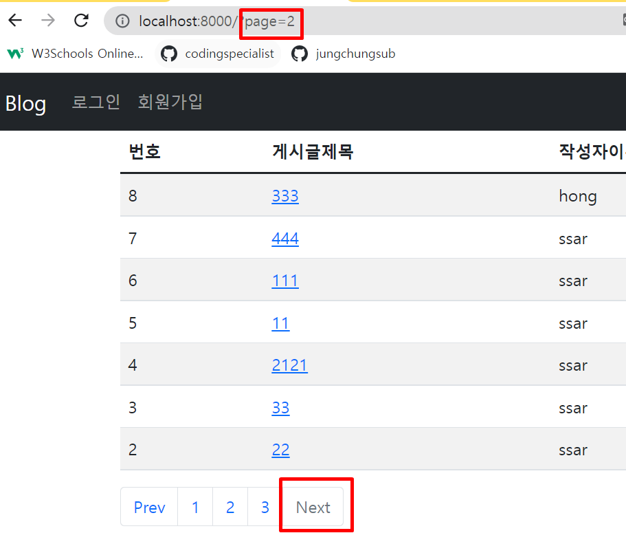 1,2,3페이지를 누르면 각자의 페이지가 나온다.