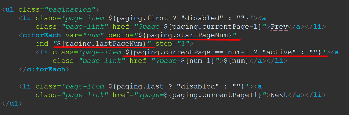 startPageNum 페이지시작 숫자 1 -> 6 -> 11 ,,,