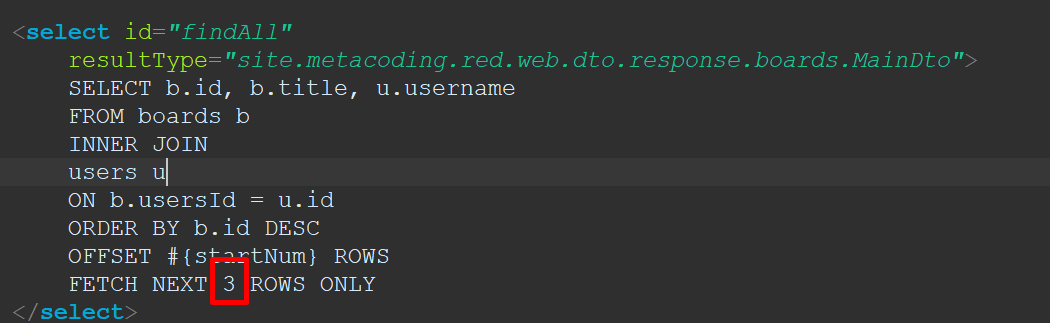 작성한 쿼리문을 boards.xml에 복사해준다.