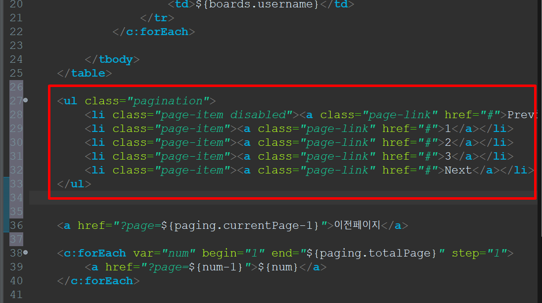 paging을 실행해서 model에 담아서 page로 갈것이다.