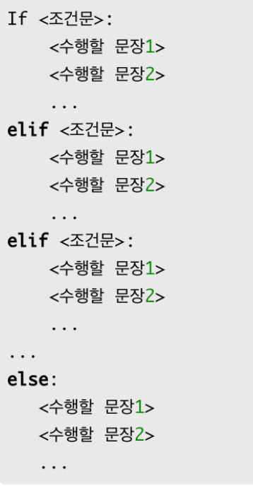 elif는 이전 조건문이 거짓일 때 수행한다.
