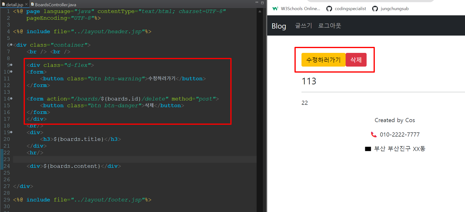 로그인, 게시글 본인이 아니라면 삭제 버튼이 없게 수정
