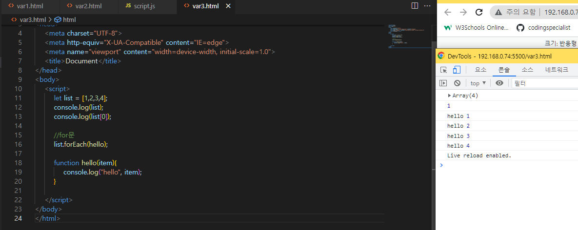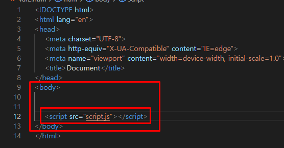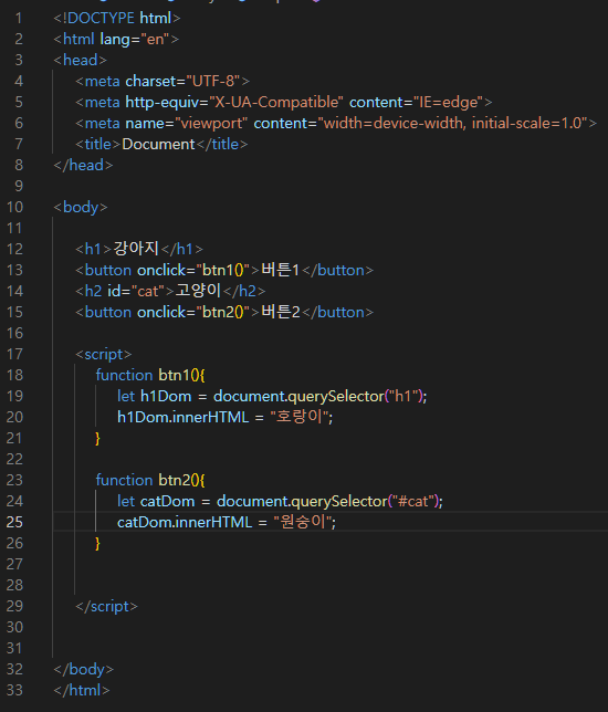 자바스크립트는 body태그 안에서 가장 밑에 있어야 한다.