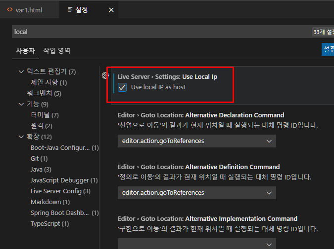 Use local IP as host 체크