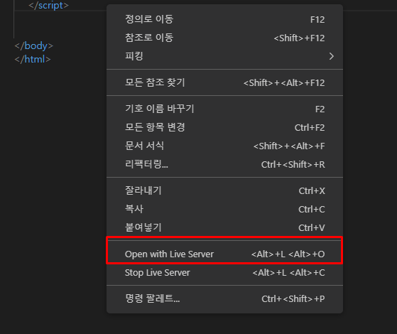 Open with Live Server 선택