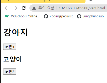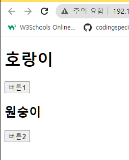 버튼1을 누르면 강아지-> 호랑이로 변하고