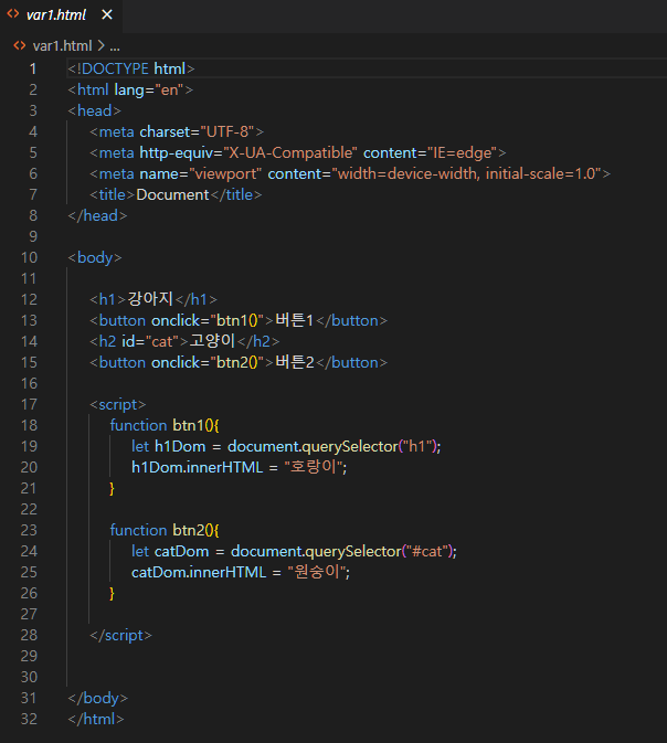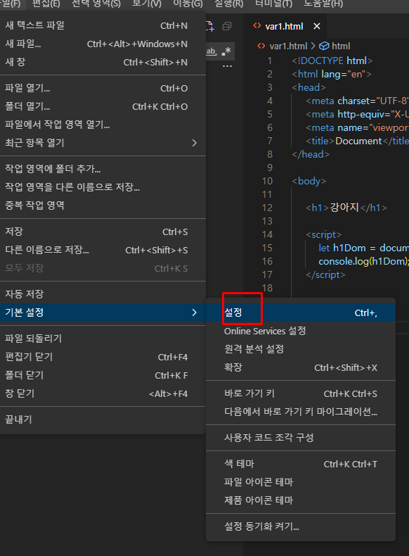 var1.html이라는 파일을 ch01폴더 안에 만들어줍니다.