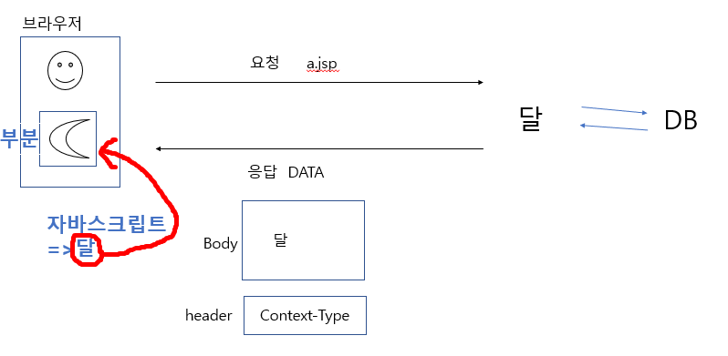 AJAX통신을 하면 데이터로 받는다 -> 부분Reload를 해야 한다.