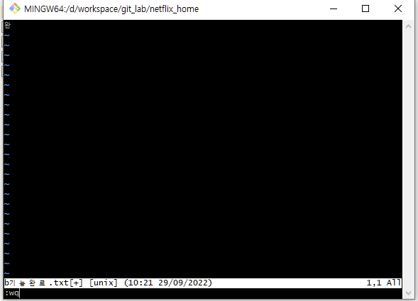 esc입력 -> insert모드에서 빠져나가기(다시 에디터 모드로 변경)