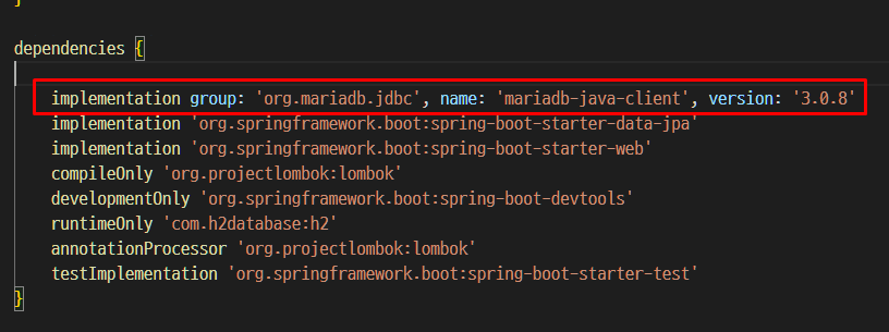 implementation 'org.mariadb.jdbc:mariadb-java-client'