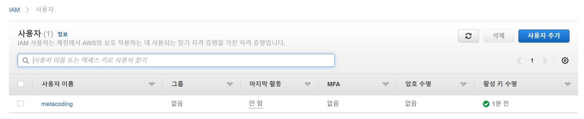 iam 사용자가 생성된것을 확인 할 수 있다.