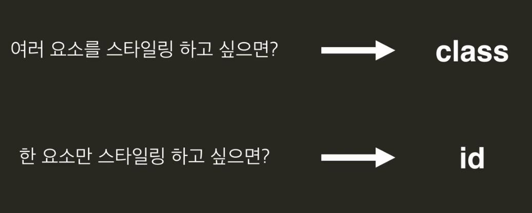 HTML 요소에게 '이름'을 주는 방법은 class, id 방법이 있다.