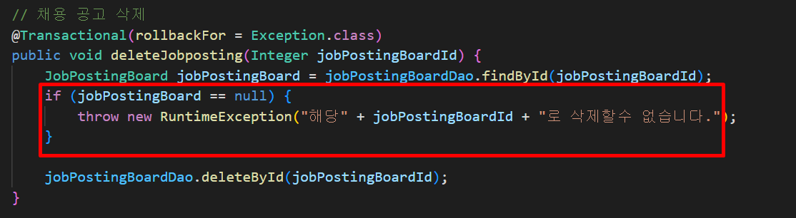 JobPostingBoardId가 null일때 삭제를 못하게 입셉션을 걸어준다.