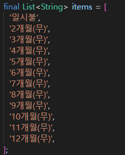 map()함수를 사용하여 items 안에 있는 문자열을 DropdownMenuItem인스턴스로 변환한다.