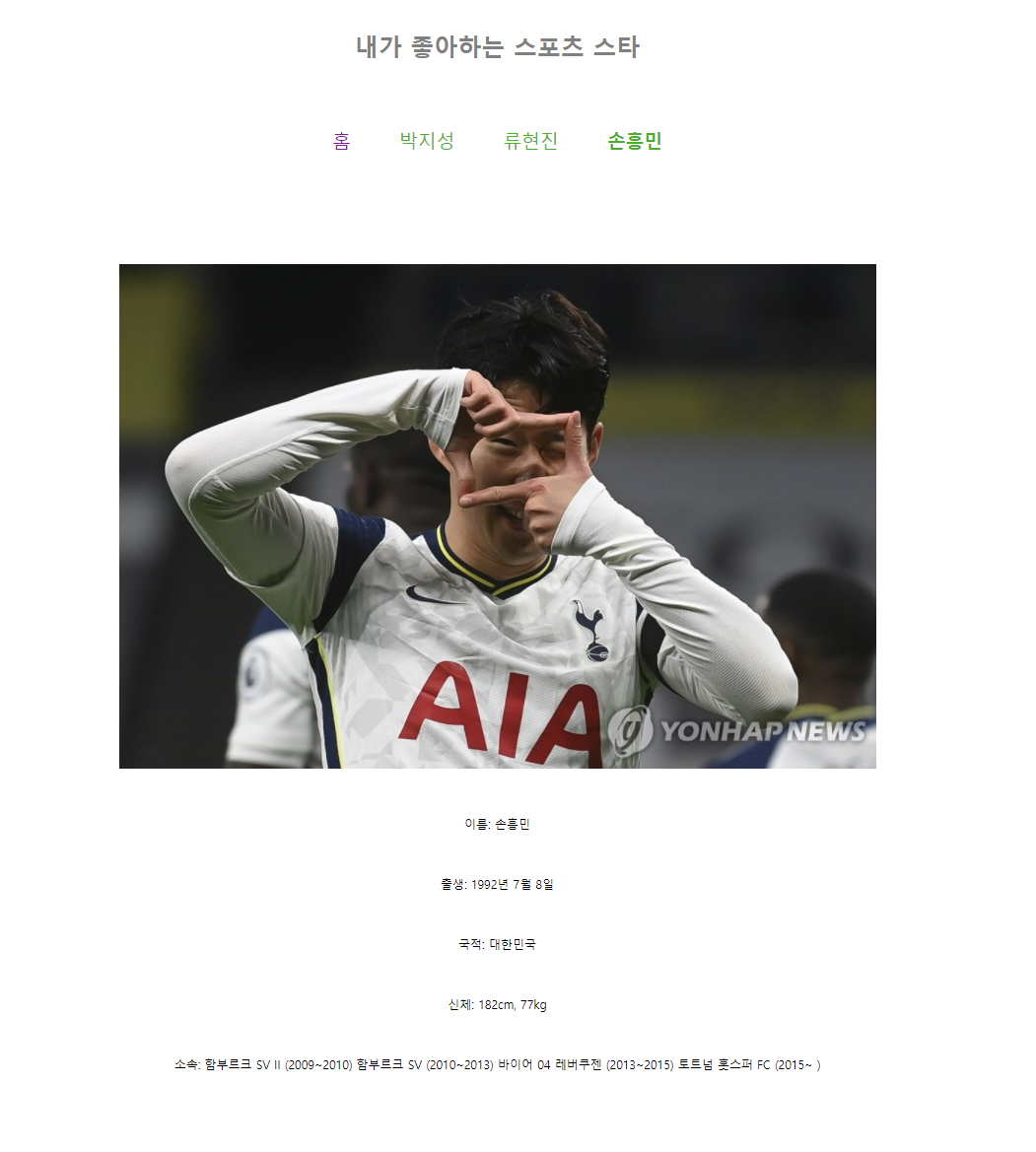 <h1> 내가 좋아하는 스포츠 스타 </h1>
