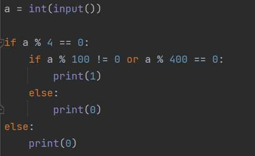 연도가 주어졌을 때, 윤년이면 1, 아니면 0을 출력하는 프로그램을 작성하시오.